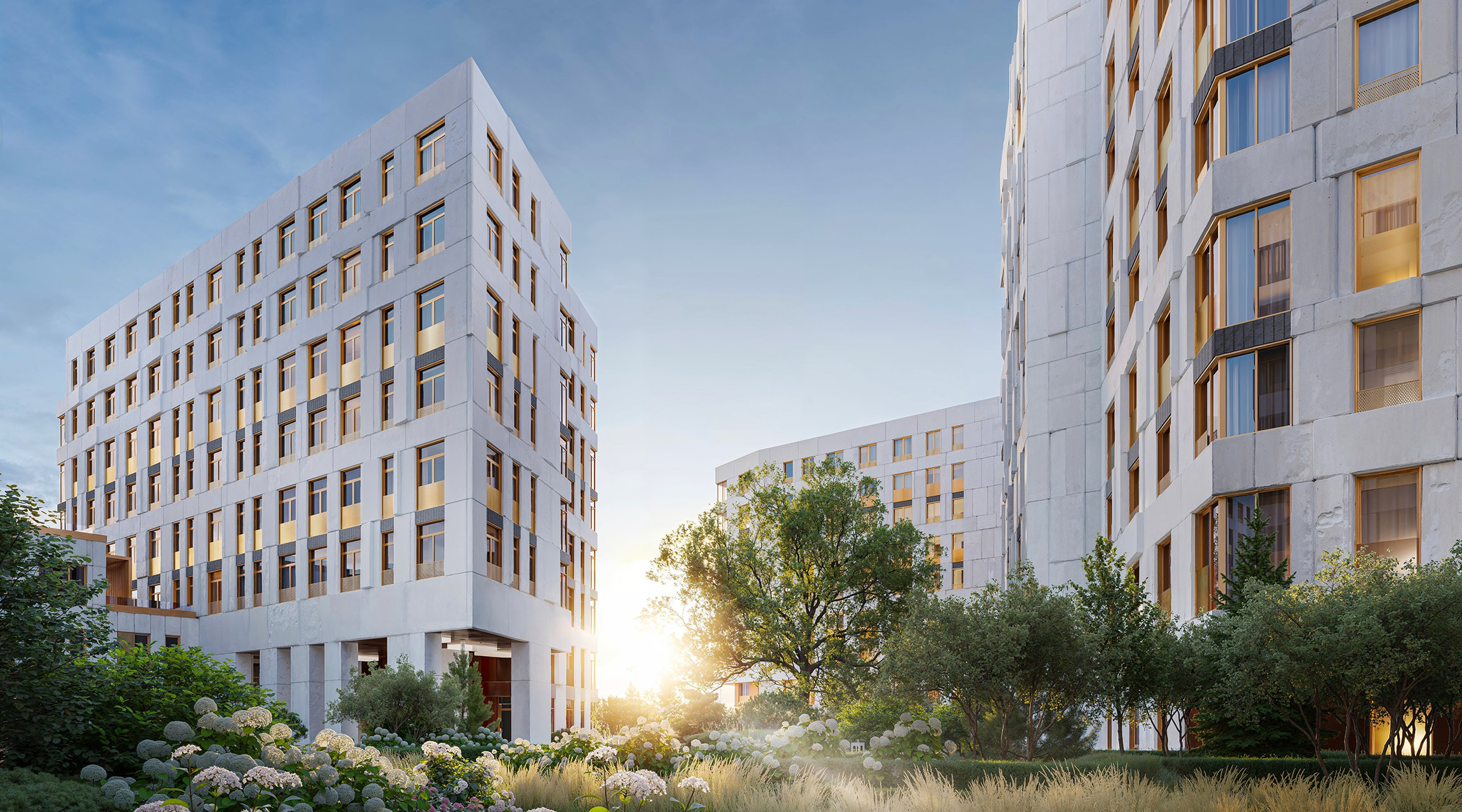 7 многоквартирных корпусов высотой 9-10 этажей, видовые сити-виллы, коммерческие и общественные пространства.