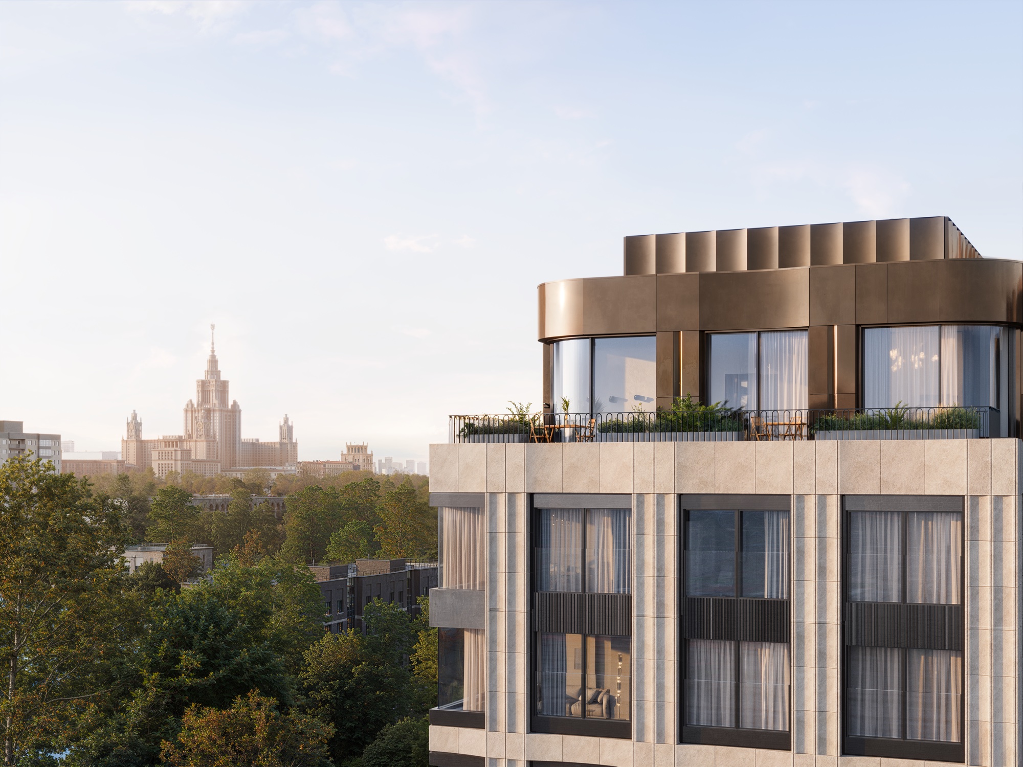 Каждая квартира на верхнем этаже имеет выход на собственную террасу. Открытые пространства площадью от 22-89 м2 позволят почувствовать особую связь с тихим окружением и его историей, создавая ощущение загородного формата жизни.